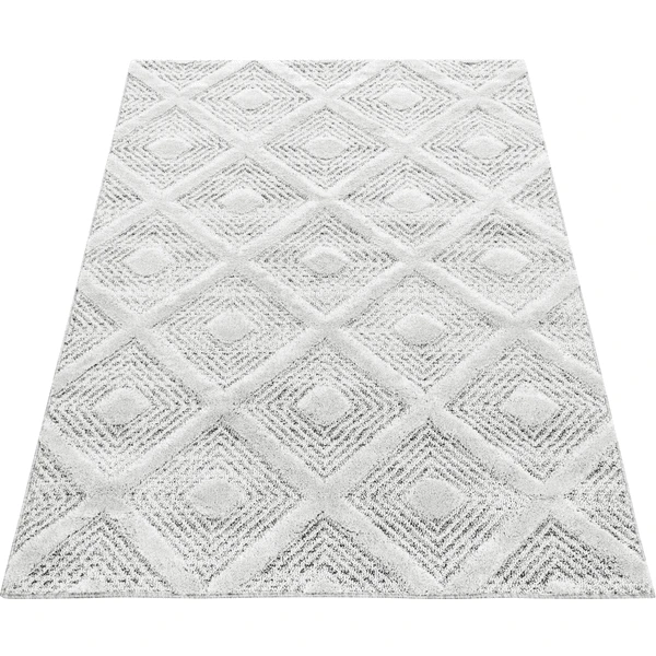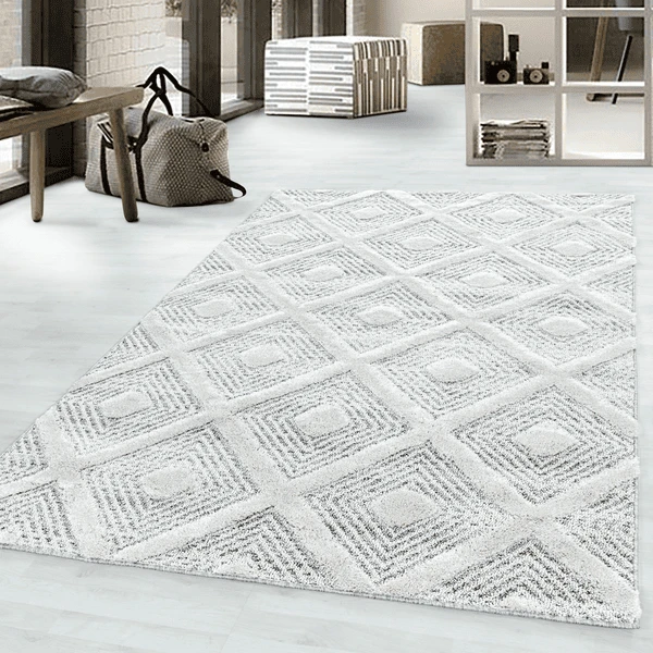 Giancasa 3D Rauten Wohnzimmer Kurzflorteppich Flachflorteppich 4707 grey