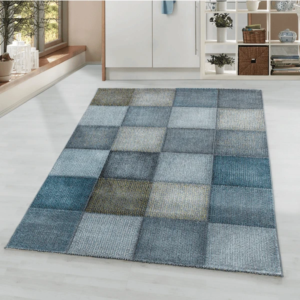 Ein schöner Designer Teppich besticht mit seinen zarten und dennoch ausdrucksvollen Blau- Tönen.Das einzigartige Karo-Muster ist in modernen Einrichtungen ein absoluter Hingucker.Bringen Sie mehr Kreativität in Ihre 4 Wände und erfreuen Sie sich an diesem tollen Accessoire.In verschiedenen Größen nur bei uns erhältlich.Technische Daten:Material: 100 % Polypropylen Frieze Florhöhe: 8 mm Größen: 80 x 150 / 120 x 170 / 140 x 200 / 160 x 230 / 200 x 290 / 240 x 340 cmLäüfer-Größe: 80 x 250 cmFarben: Blau / Grün / Grau / Multi / Pink