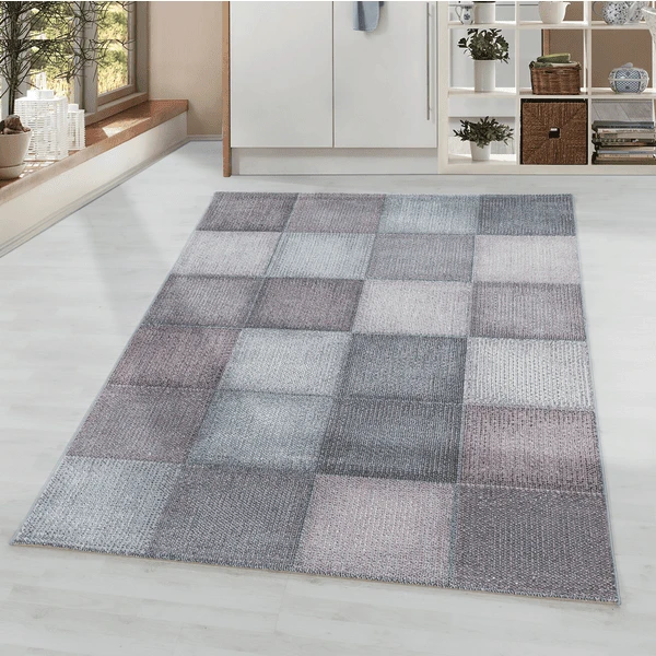 Giancasa Designteppich kariert Wohnzimmer Kurzflorteppich pflegeleicht 4202 PINK