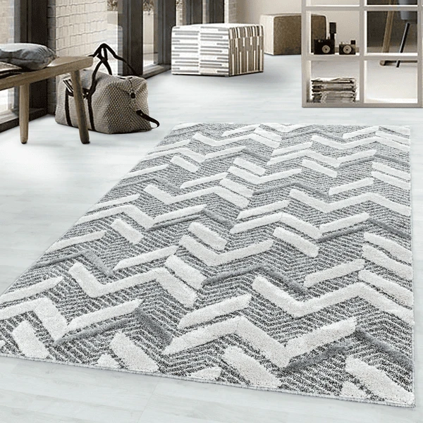Giancasa Designteppich Zickzackmuster Wohnzimmer Flachflorteppich 3D 4705 grey