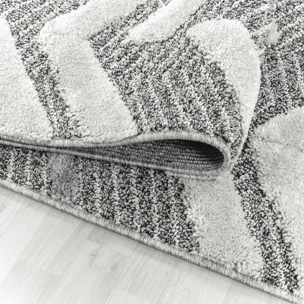 “Teppich – kreativ und schönHier kommt ein tolles Design für jeden Teppich- Liebhaber.Dieser Teppich wertet jeden Raum im Nu auf und bringt täglich neuen Schwungund Energie mit. Dezent eingerichtete Räume werden mit ihm sofort zur Augenweide.Dazu ist er noch äußerst robust und pflegeleicht, womit Sie lange Freude an ihn haben werden.Freuen Sie sich auf ein ganz besonderes Accessoire, der Extraklasseund beschenken Sie sich noch heute selbst. Oder auch als Geschenk für Ihre Liebsten. Sie werden begeistert sein!Auch Fußbodenheizung geeignet.Technische Daten:Material: 100 % Polypropylen Florhöhe: 20 mm Größen: 60 x 110 / 80 x 150 / 120 x 170 / 140 x 200 / 160 x 230 / 200 x 290 / 240 x 340 / 280 x 370 cmLäüfer-Größe: 80 x 250 cmGrößen-Rund: 80 x 80 / 120 x 120 / 160 x 160 / 200 x 200 cmFarben: Grau