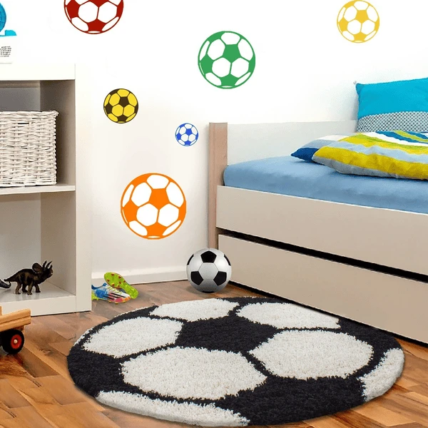 Ein wunderschöner Fußballteppich besticht mit seinen kräftigen Farben und seinem hohen Flor.Bringen Sie ab sofort noch mehr Wärme und Freude in das Zimmer Ihres Kindesund lassen Sie hiermit die Herzen echter Fußballfans höher schlagen.Der tolle Teppich wertet jedes Kinderzimmer direkt auf und lädt zum Spielen ein.Ob für Mädchen oder Junge, bei uns erhalten Sie verschiedene Größen und Farben,sodass für jeden etwas dabei ist.Oder auch als schönes Geschenk für Ihre Liebsten.Freuen Sie sich auf einen pflegeleichten Teppich.Technische Daten:Material: 100 % Polypropylen Florhöhe: 30 mm Größen-Rund: 120 x 120 / 100 x 100 cmFarben: Schwarz / Grün / Navy / Rot / Türkis / Gelb