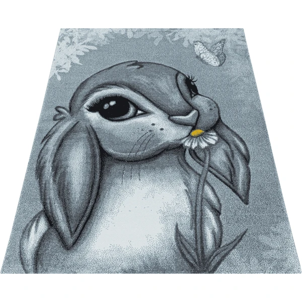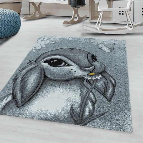 Ein wunderschöner Kinder-Teppich besticht mit einem süßen und fröhlichen Kaninchen.Bringen Sie ab sofort noch mehr Wärme und Freude in das Zimmer Ihres Kindesund lassen Sie hiermit Kinderherzen höher schlagen.Der niedliche Teppich wertet jedes Kinderzimmer direkt auf und lädt zum Spielen ein.Ob für Mädchen oder Junge, bei uns erhalten Sie verschiedene Größen und Farben,sodass für jeden etwas dabei ist.Oder auch als schönes Geschenk für Ihre Liebsten.Freuen Sie sich auf einen pflegeleichten Teppich.Technische Daten:Material: 100 % Polypropylen Frieze Florhöhe: 11 mm Größen: 80 x 150 / 120 x 170 / 140 x 200 / 160 x 230 / 200 x 290 cmGrößen-Rund 120 x 120 / 160 x 160 cmFarben: Blau / Pink