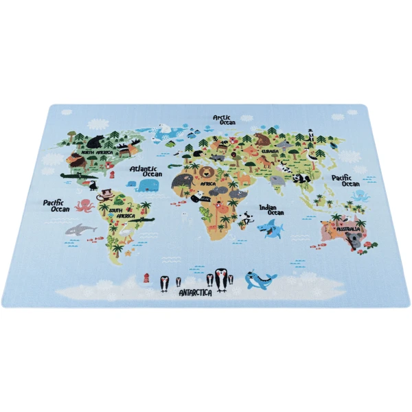 Dieser wunderschöne Spiel und Lern Kinderteppich wertet jedes Kinderzimmer im Nu auf. Er ist sowohl wärmend als auch äußerst pflegeleicht.Ab sofort kann Ihr Kind nicht nur auf dem Boden spielen, sondern auch noch anhand der “süßen” Aufzeichnungen einiges über Länder und Tiere dazu lernen.Lassen Sie Kinderherzen höher schlagen und freuen Sie sich über dieseneinzigartigen Teppich.Er wird den Raum direkt fröhlicher gestalten. Garantiert !Technische Daten:Material: 100 % PolyamideFlorhöhe: 8 mm Größen: 80 x 120 / 100 x 150 / 120 x 170 / 140 x 200 / 160 x 230 cmFarben: Blau