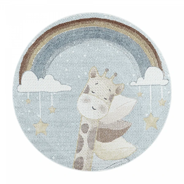 Ein wunderschöner Kinder-Teppich besticht mit einem süßen Giraffenmotiv.Bringen Sie ab sofort noch mehr Wärme und Freude in das Zimmer Ihres Kindesund lassen Sie hiermit Kinderherzen höher schlagen.Der niedliche Teppich wertet jedes Kinderzimmer direkt auf und lädt zum Spielen ein.Ob für Mädchen oder Junge, bei uns erhalten Sie verschiedene Größen ,sodass für jeden etwas dabei ist.Oder auch als schönes Geschenk für Ihre Liebsten.Freuen Sie sich auf einen pflegeleichten Teppich.Technische Daten:Material: 100 % Polypropylen FriezeFlorhöhe:10 mm Größen: 80 x 150 / 120 x 170 / 140 x 200 / 160 x 230 / 200 x 290 cmGrößen-Rund: 120 x 120 / 160 x 160 cmFarben: Blau
