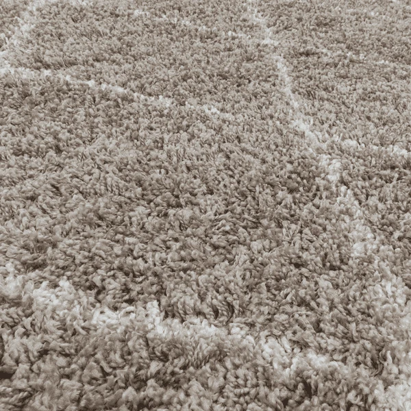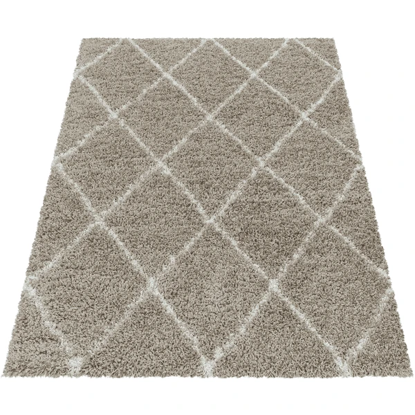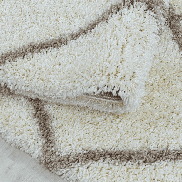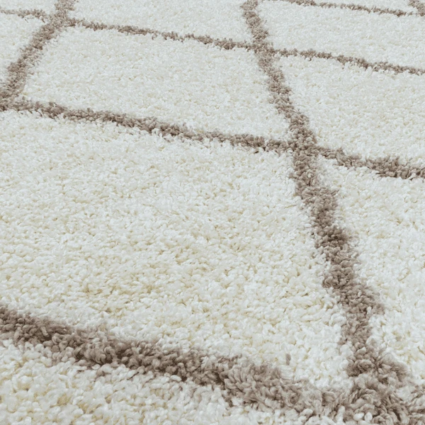 Giancasa Langflorteppich kariert Hochflorteppich Shaggy Wohnzimmer 3401 BEIGE