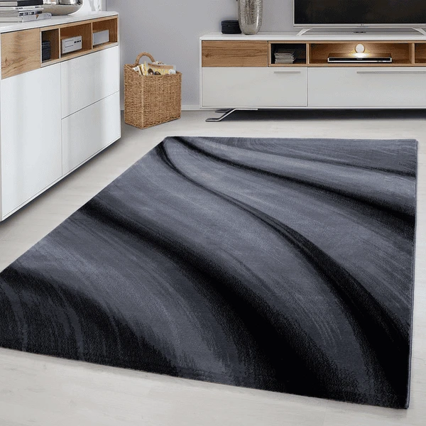 Giancasa Wellenoptik modern Flachflorteppich Kurzflorteppich deko 6630 BLACK