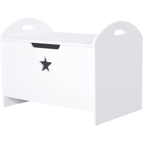 Mit der Spielzeugtruhe wird das Aufräumen auch für Kinder ganz einfach. Dort lässt sich alles unterbringen, was gerade nicht zum Spielen gebraucht wird: Bücher, Bälle oder sonstige Spielsachen sind darin ganz schnell verstaut. Die Kiste ist mit einem Sicherheitsscharnier ausgestattet, das dafür sorgt, dass der Deckel stets in seiner jeweiligen Position bleibt und sich auch beim Schließen nur langsam absenkt. Die Box hat zwei Tragegriffe, und kann im Kinderzimmer auch als Sitzgelegenheit dienen.