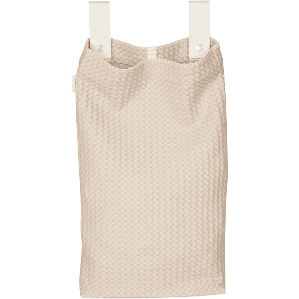 Koeka stellt Laufstallzubehör in verschiedenen Materialien, Stilen und Farben her, so dass jeder ein Produkt nach seinem Geschmack finden kann. Meistens steht der Laufstall im Wohnzimmer, daher ist es schön, wenn das Laufstallzubehör zur Einrichtung passt. In dieser praktischen Laufgittertasche können Sie alles aufbewahren, was Sie wollen. Spielzeug, Windeln, Kleider, Kuscheltiere; alles, was den Laufstall zu voll macht oder worüber Sie lieber nicht stolpern möchten, können Sie darin aufbewahren. Die Aufbewahrungstasche lässt sich mit zwei Schlaufen mit Druckknöpfen einfach am Laufstall oder am Bett befestigen. Man kann den Laufgitterbeutel oben mit einem in der Mitte angebrachten Band verschließen. Der Laufgitterbeutel hat einen verstärkten losen Boden, der vor dem Waschen entfernt werden muss.Waffelstoff von Koeka; wer kennt ihn nicht? Der waffelgeprägte Baumwollstoff ist eine coole Version der old school Retro-Waffeldecken aus den Siebzigern. Waffelprodukte sind unsere absoluten Bestseller und in einer so großen Farbauswahl erhältlich, dass es sicher eine Farbe gibt, die auch zu dir passt. Außerdem bringen wir regelmäßig eine neue Trendfarbe auf den Markt, also behaltet unsere Waffelartikel im Auge! Wusstest du, dass sich die Namen von Waffelprodukten auf das verwendete Futter beziehen? Amsterdam ist Waffel mit Frottee, Antwerpen ist Waffel mit Flanell oder Stretch Frottee und Oslo ist Waffel mit Teddy.Die Gröβe dieses Produkts ist 20x45x60cm.