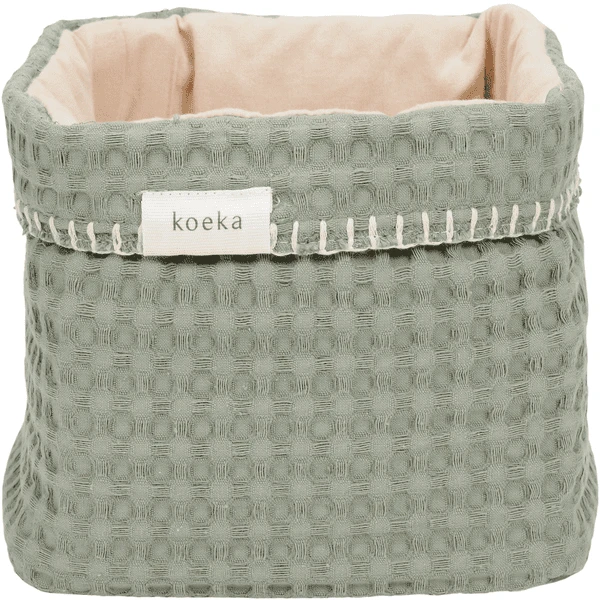 Wo bewahrst du all die losen Gegenstände auf, die man zum Wickeln oder Anziehen des Babys braucht? Mit einem Kommodenkorb hast du alles an einem Ort und in bequemer Reichweite. Der Korb ist sowohl praktisch und stylisch und ein Must-Have auf der Kommode! Koeka stellt Aufbewahrungskörbe in verschiedenen Stilen und Farben her, so dass man immer einen Korb findet, der zur Einrichtung des Babyzimmers passt. Der Korb ist auf der Innenseite verstärkt, so dass er nicht zusammenfällt und man kann den Rand umklappen, um einen anderen Look zu schaffen.Waffelstoff von Koeka; wer kennt ihn nicht? Der waffelgeprägte Baumwollstoff ist eine coole Version der old school Retro-Waffeldecken aus den Siebzigern. Waffelprodukte sind unsere absoluten Bestseller und in einer so großen Farbauswahl erhältlich, dass es sicher eine Farbe gibt, die auch zu dir passt. Außerdem bringen wir regelmäßig eine neue Trendfarbe auf den Markt, also behaltet unsere Waffelartikel im Auge! Wusstest du, dass sich die Namen von Waffelprodukten auf das verwendete Futter beziehen? Amsterdam ist Waffel mit Frottee, Antwerpen ist Waffel mit Flanell oder Stretch Frottee und Oslo ist Waffel mit Teddy.Die Gröβe dieses Produkts ist 18x15x15cm.