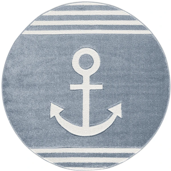 LIVONE Kinderteppich Kids love Rugs Anker Rund blau/weiss