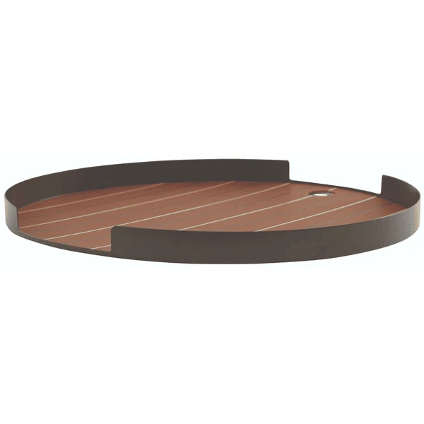 Unser Oka-Tablett ist praktisch und schön zugleich. Das Tablett ist aus pulverbeschichtetem Metall gefertigt und wird mit einer strapazierfähigen Silikonmatte geliefert. Wir empfehlen Ihnen, das Tablett mit einem feuchten Tuch zu reinigen.