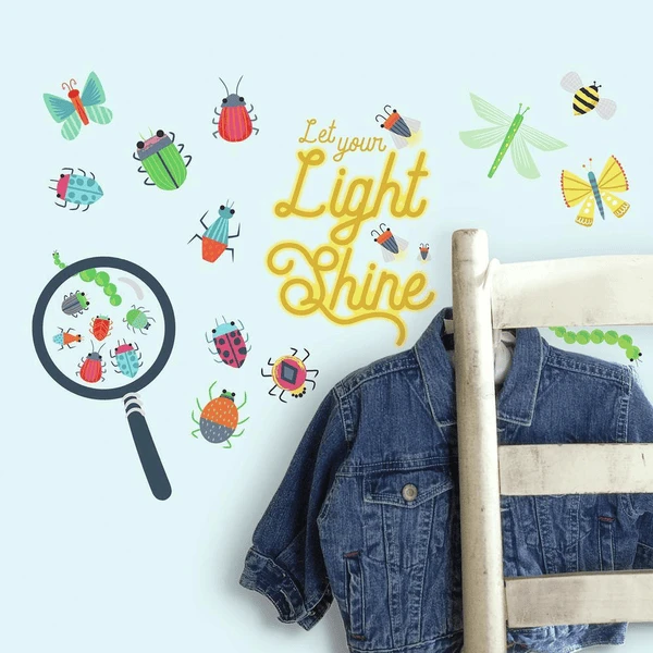 Room Mates Bunte Insekten “Light Shine” Quote Mehrfarbig