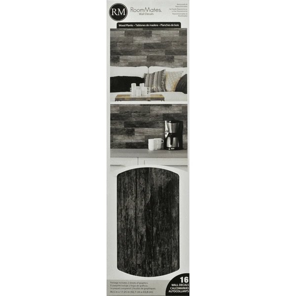 Gestalten Sie Ihren Raum mit den anthrazitfarbenen Wandstickern von RoomMates in Holzoptik. Verwandeln Sie Ihr Zuhause mit den 16 Wandstickern im Holzdielen Look und erschaffen Sie ein modernes Scheunen-Ambiente. Verleihen Sie Ihren Vier Wänden mit den RoomMates Peel and Stick Wandstickern einen neuen Look! Die Wandsticker lassen sich spielend leicht anbringen: Einfach vom Sticker Bogen abziehen und auf die glatte, ebene Oberfläche ankleben. Ziehen Sie die selbstklebenden Elemente wieder ab, positionieren Sie sie neu und verwenden Sie sie so oft wie gewünscht wieder. So schaffen Sie immer wieder ein individuelles Wohnambiente. Die RoomMates Wandsticker lassen sich ohne zurückbleibende Klebereste ablösen. Die Sticker sind auf einem unbedenklichen, qualitativ hochwertigen Material gedruckt. Sorgen Sie für kreative Highlights und gestalten Sie Ihre Wände, Türen und Möbel in Sekundenschnelle mit den RoomMates Wandaufklebern! – Leicht anzubringen: Einfach abziehen und ankleben – Anwendbar auf jeder glatten, sauberen Oberfläche – Ohne zurückbleibende Klebereste entfernbar und neu platzierbar – Perfekt für Mieter und Hausbesitzer Inhalt: 2 Bögen mit insgesamt 16 StickernGröße Produkt (cm): 43,82 x 92,71 x Größe Verpackung (cm): 48,26 x 12,7 x 2,54