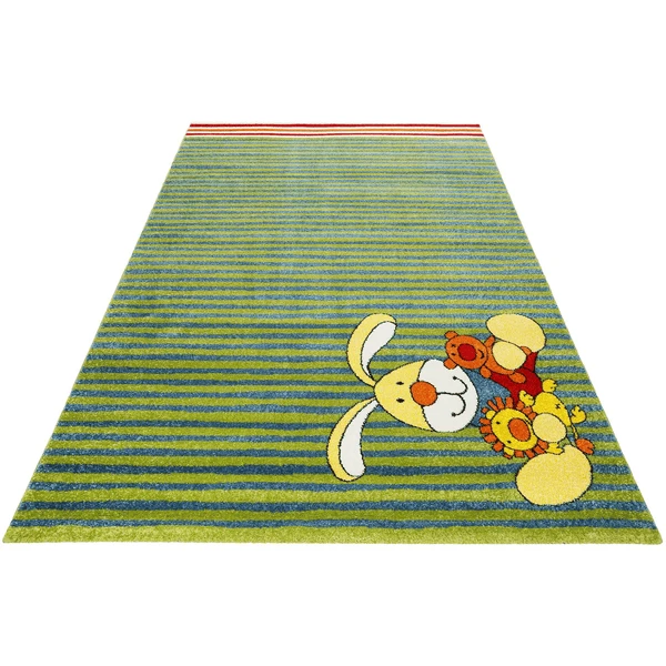 Als Protagonist einer erfolgreichen sigikid-Serie hat Semmel Bunny schon viele Kids durch ihre ersten Lebensjahre begleitet. Seinen Charme versprüht der kleine Hase nun auch auf einem entzückenden Kinderteppich mit lässigem Streifen-Design. Gewebt, in zwei Farbstellung. Aus Polypropylen Frisée. Florhöhe: 13 mm.