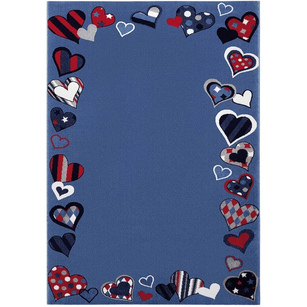 Ob gestreift, gepunktet, gefüllt oder umrandet: Dieser Teppich ist eine echte Herzensangelegenheit! Erhältlich ist er in zwei Varianten, in kräftigem Pink oder sanftem Mittelblau. Die Bordüre aus aneinandergereihten Herzen ist ein dekorativer Hingucker! Dieser Bodenbelag ist kuschelig weich und dabei super pflegeleicht, dank hochwertiger Mikrofaser. Florhöhe ist 8,5 mm. Gewicht pro Quadratmeter: 2500 g. Rücken aus Mischgewebe. Eine Anti-Rutsch-Unterlage wird empfohlen.